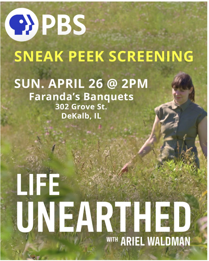 Attend a premiere screening for the new PBS nature documentary series, Life Unearthed with Ariel Waldman (currently airing weekly here). This series follows National Geographic Explorer Waldman through two undiscovered territories, Antarctica and the American Prairie, at scales never before seen on film. Join the Director and Lead Science Advisor for two unaired episodes filmed right in your backyard at the Nachusa Grasslands, followed by a Q&A. We look forward to seeing you there!